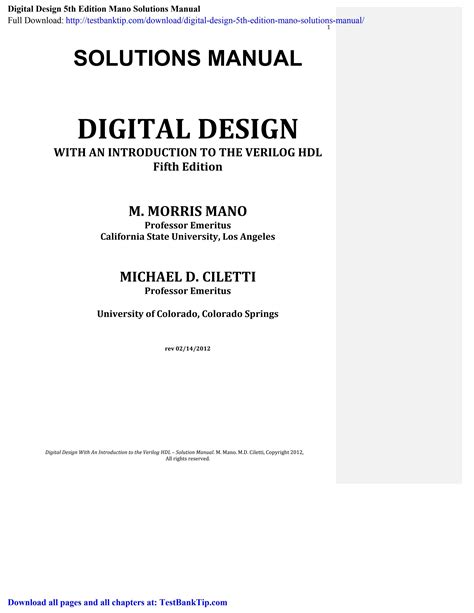 Download Digital design mano 5th edition solution manual Hardcover BookBoon